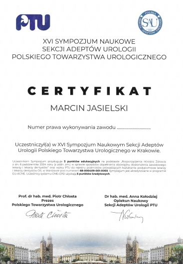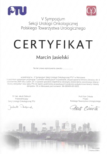 Jaki jest zakres porad oferowanych przez Marcin Jasielski?Marcin Jasielski to urolog. Na podstawie swojego doświadczenia i wykształcenia Marcin Jasielski oferuje usługi takie jak: konsultacja urologiczna (kolejna wizyta), konsultacja urologiczna (pierwsza wizyta), konsultacja urologiczna kolejna wizyta + usg układu moczowego + usg jąder, Konsultacja urologiczna + USG, USG jąder, USG nerek, USG prostaty, biopsja prostaty, usunięcie prostaty z wykorzystaniem robota da Vinci, cystoskopia.