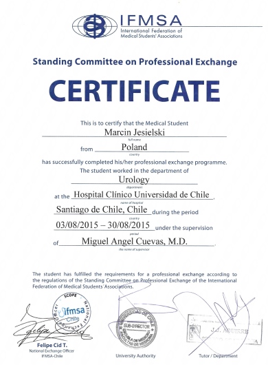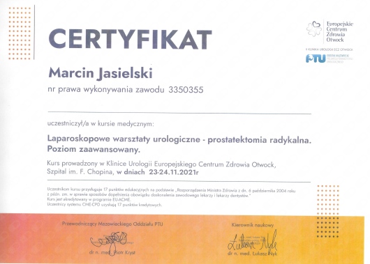 Umiejętności w zakresie chirurgii robotycznej rozwijałem podczas szkoleń m.in. w Oxfordzie, Amsterdamie, Wiedniu, Gronau. Odbyłem również staż kliniczny w Santiago de Chile.