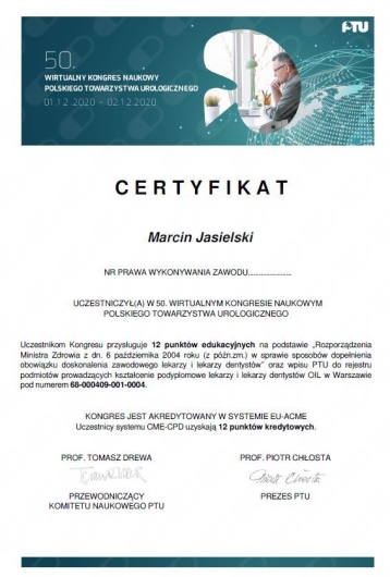 Członek Polskiego (PTU) i Europejskiego Towarzystwa Urologicznego (EAU).