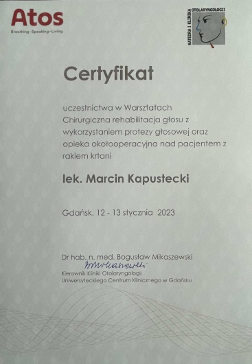W trakcie specjalizacji (Laryngolog)