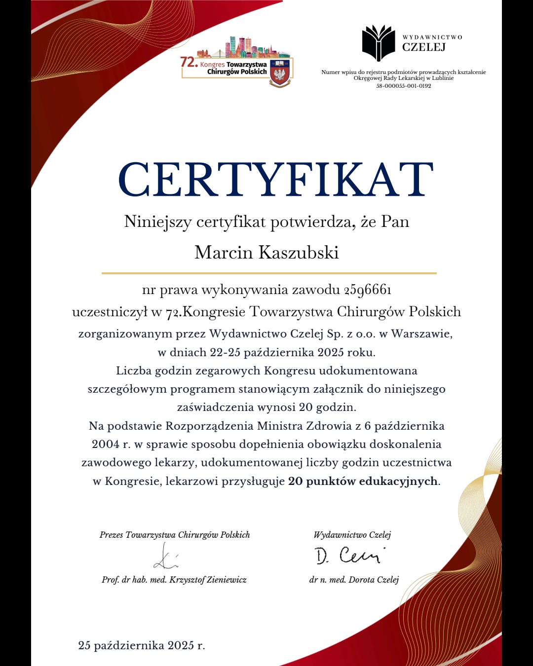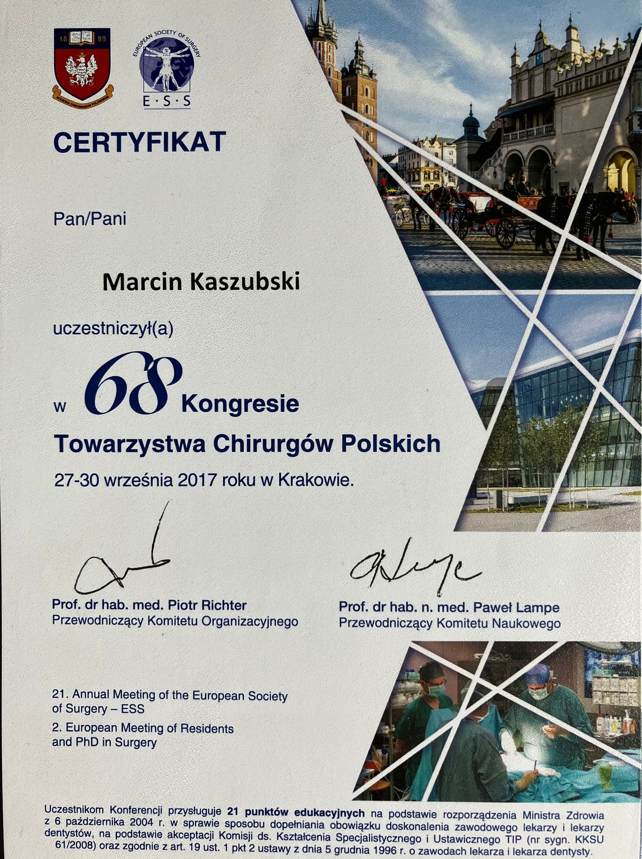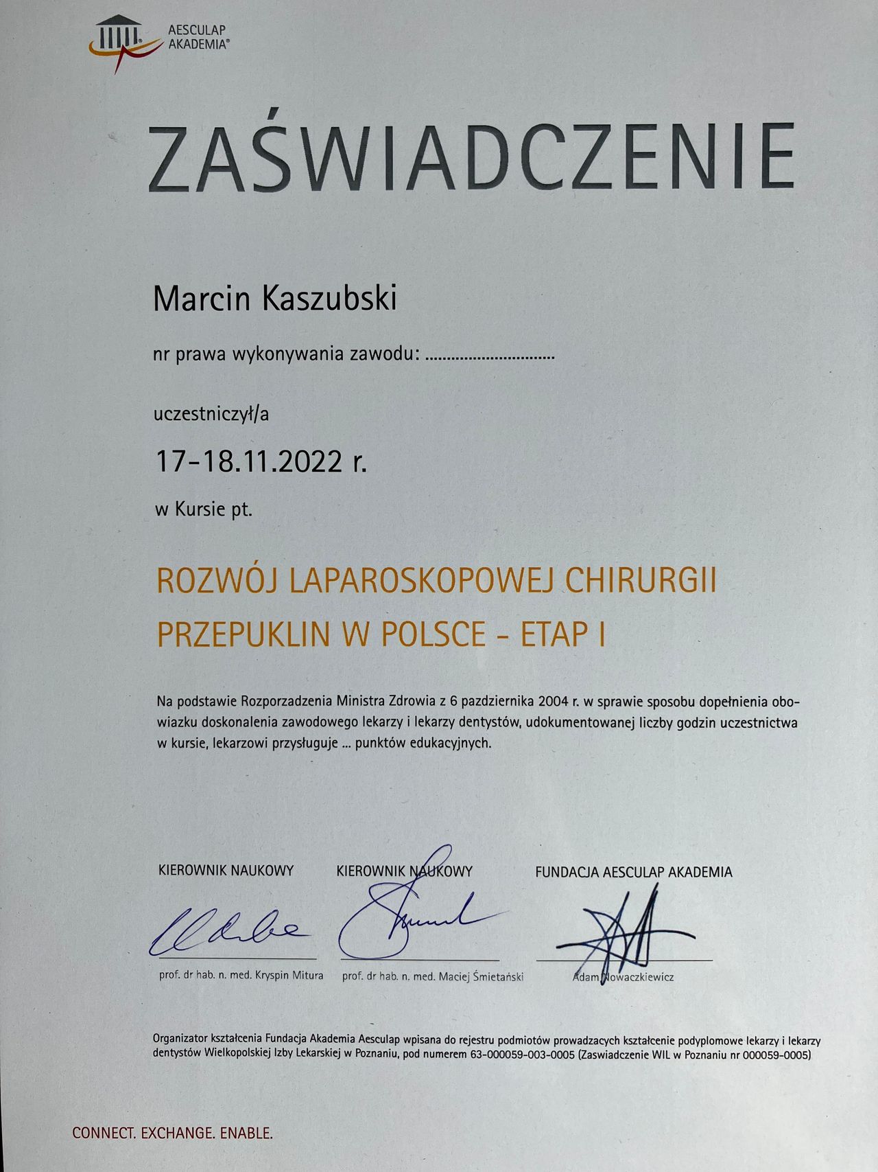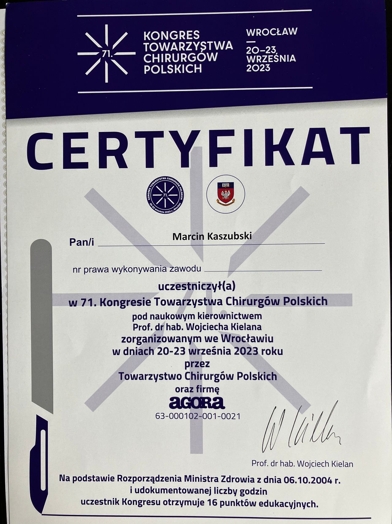 Nieustannie rozwijam swoje kompetencje, biorąc udział w krajowych i międzynarodowych konferencjach oraz szkoleniach. Ukończyłem certyfikowany program szkoleniowy Hernia Master, który pogłębił moją wiedzę i umiejętności w zakresie leczenia przepuklin.
