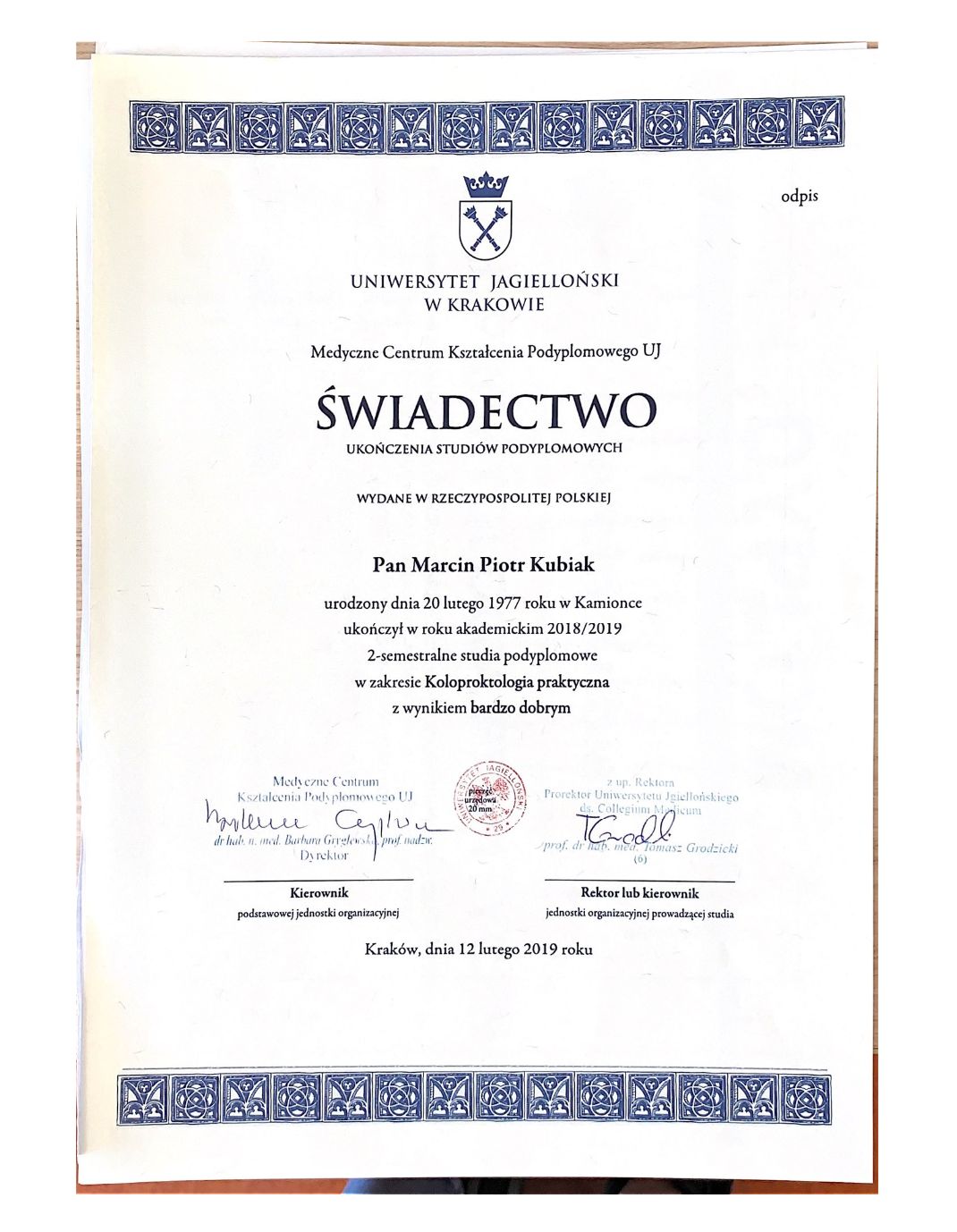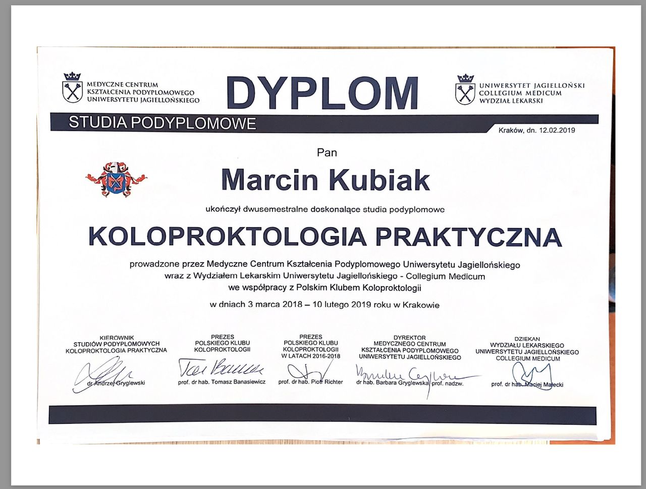 dr Marcin Kubiak Chirurg, specjalista chirurgii ogólnej i onkologicznej, koloproktolog.