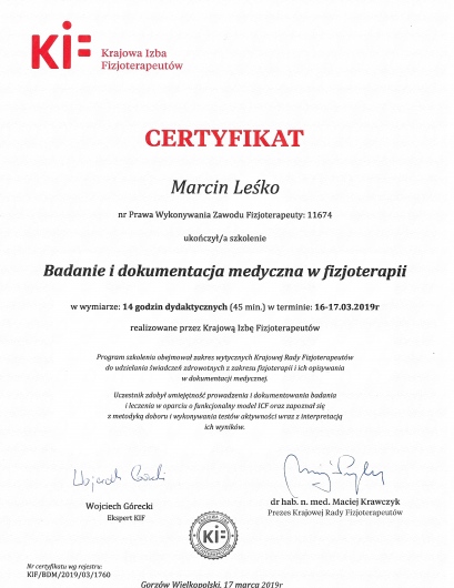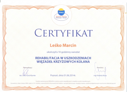 Przed rozpoczęciem prywatnej i samodzielnej praktyki zasilałem skład zespołu REHAkompleks w Gorzowie Wlkp.