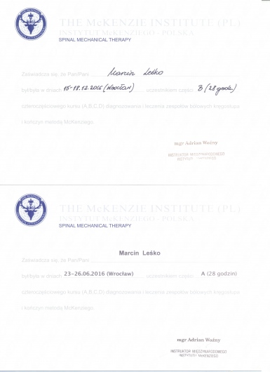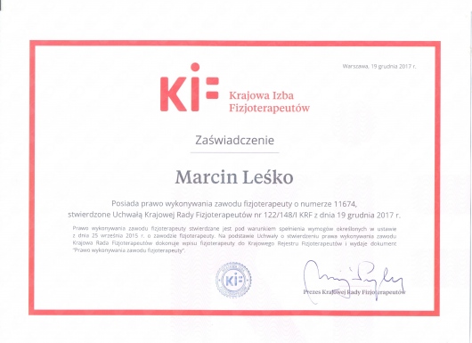 Jaki jest zakres porad oferowanych przez Marcin Leśko?Marcin Leśko to fizjoterapeuta. Na podstawie swojego doświadczenia i wykształcenia Marcin Leśko oferuje usługi takie jak: fizjoterapia, konsultacja fizjoterapeutyczna, Pinoterapia, Fizjoterapia pourazowa, metoda McKenzie, Terapia manualna.