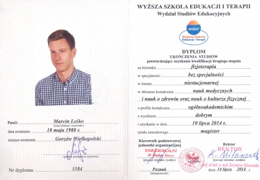 w Gorzowie Wlkp. a swoje umiejętności zawodowe doskonaliłem również w przychodni rehabilitacyjnej