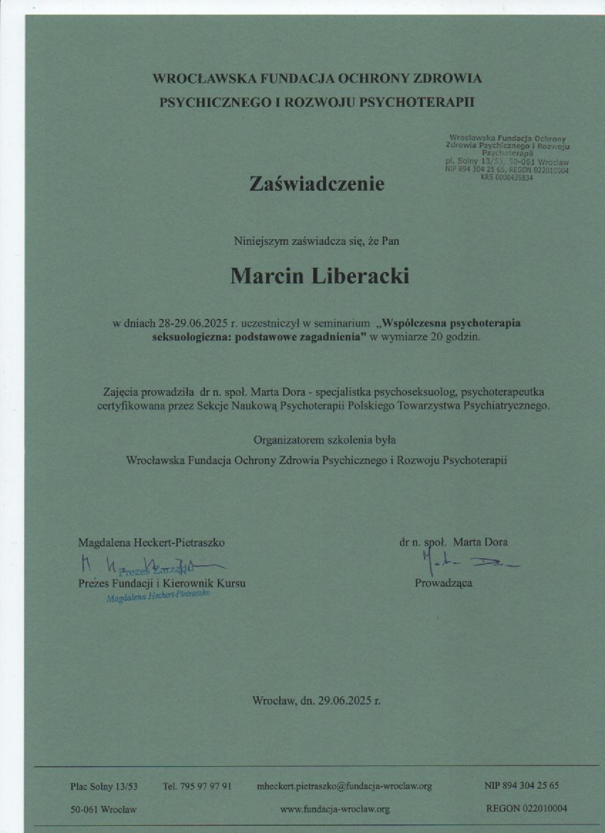 • Gabinet psychoterapeutyczny Marcin Liberacki • konsultacja psychoterapeutyczna •