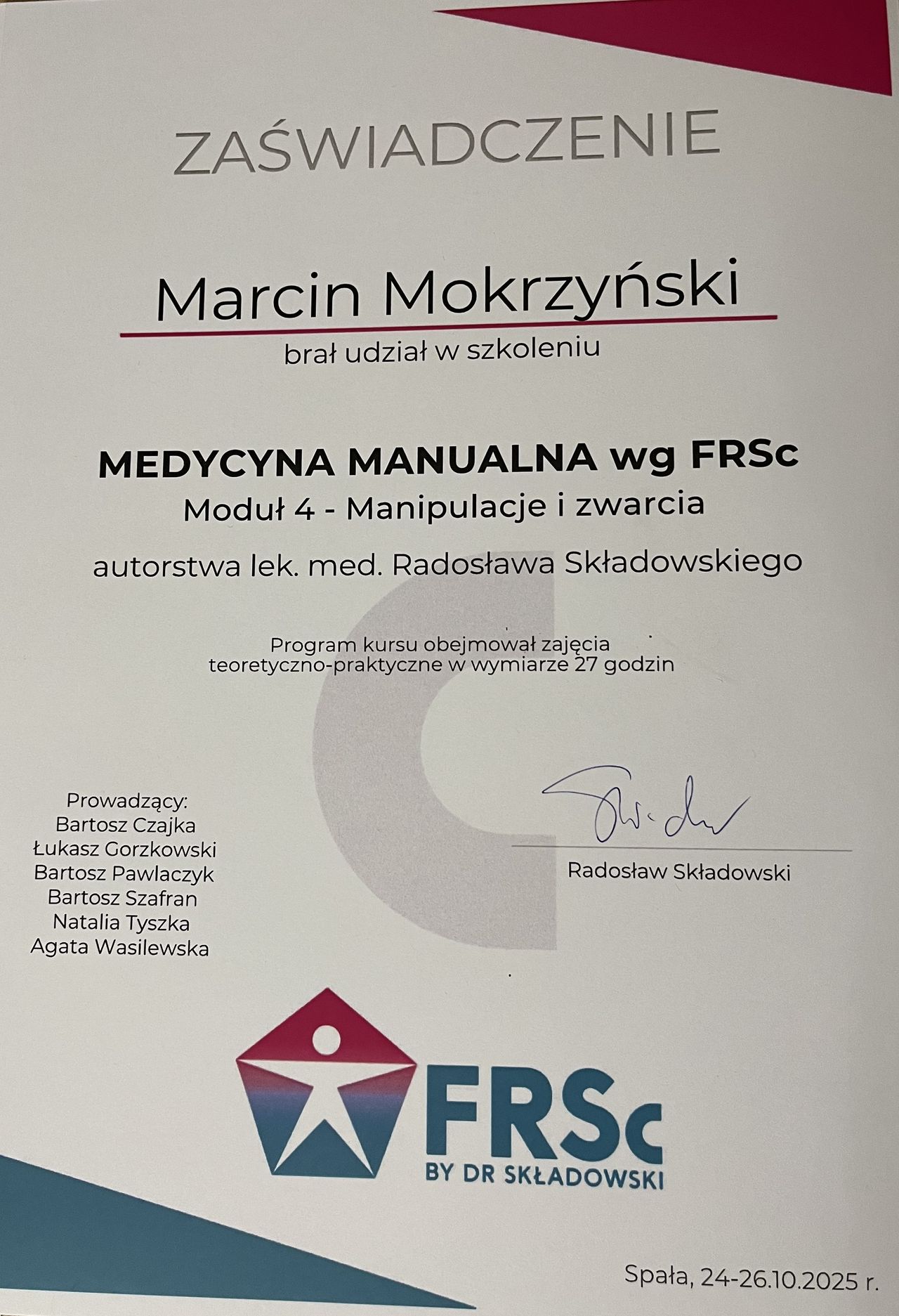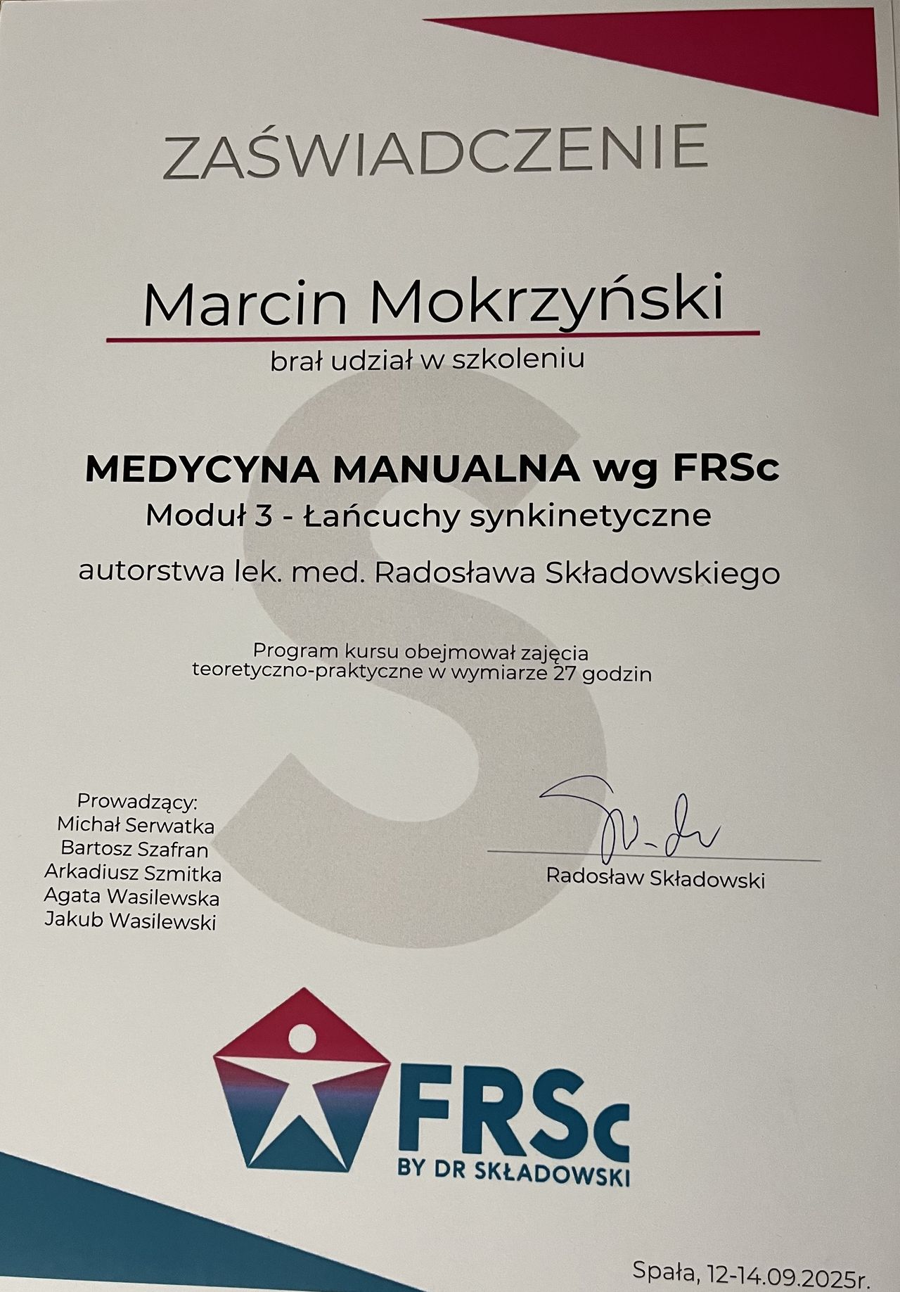 Podczas terapii łączę nowoczesne metody pracy z indywidualnym podejściem do każdej osoby. Największą satysfakcję daje mi realna poprawa komfortu życia pacjentów – kiedy bez bólu wracają do pracy, sportu i codziennych aktywności.