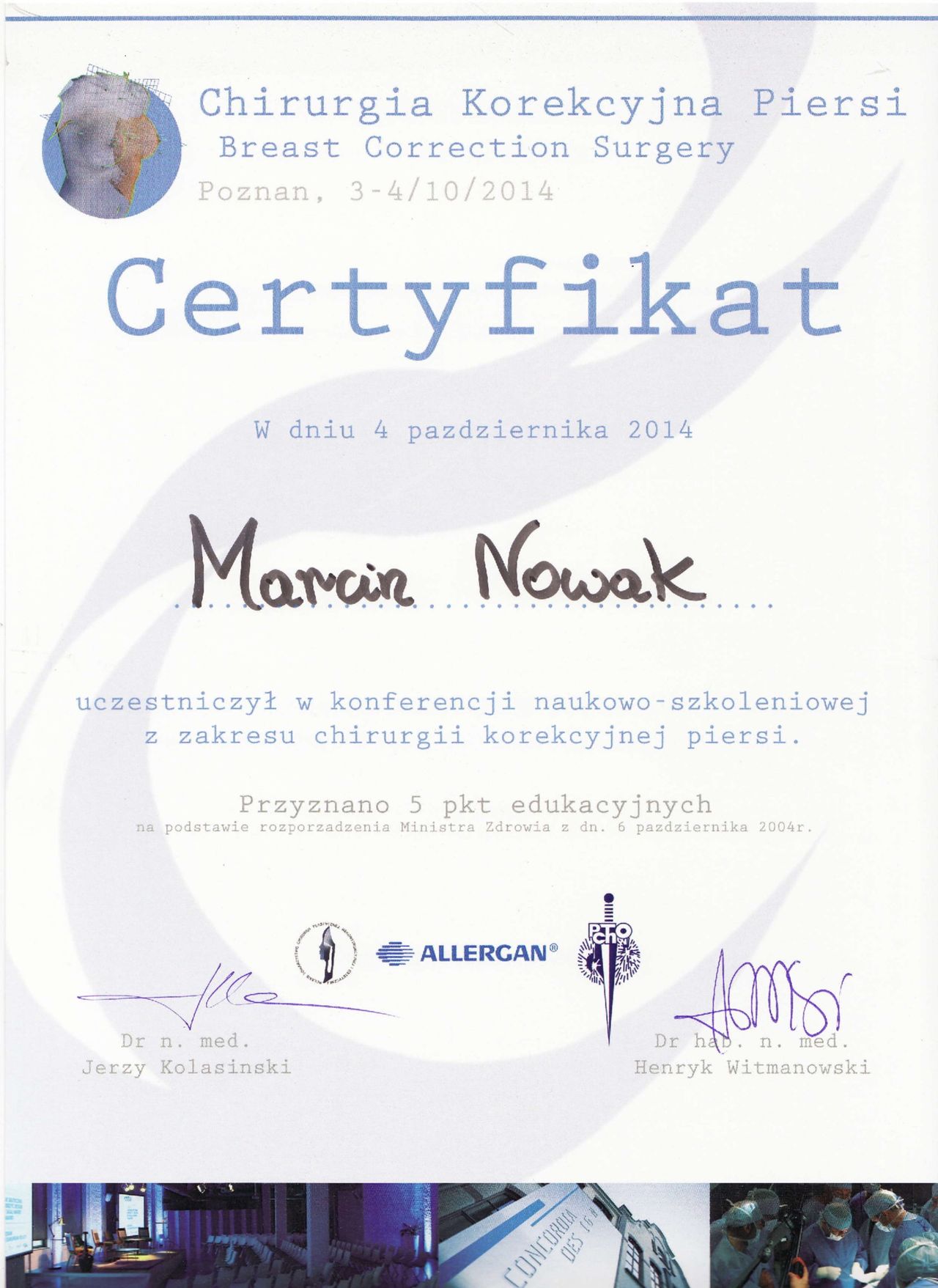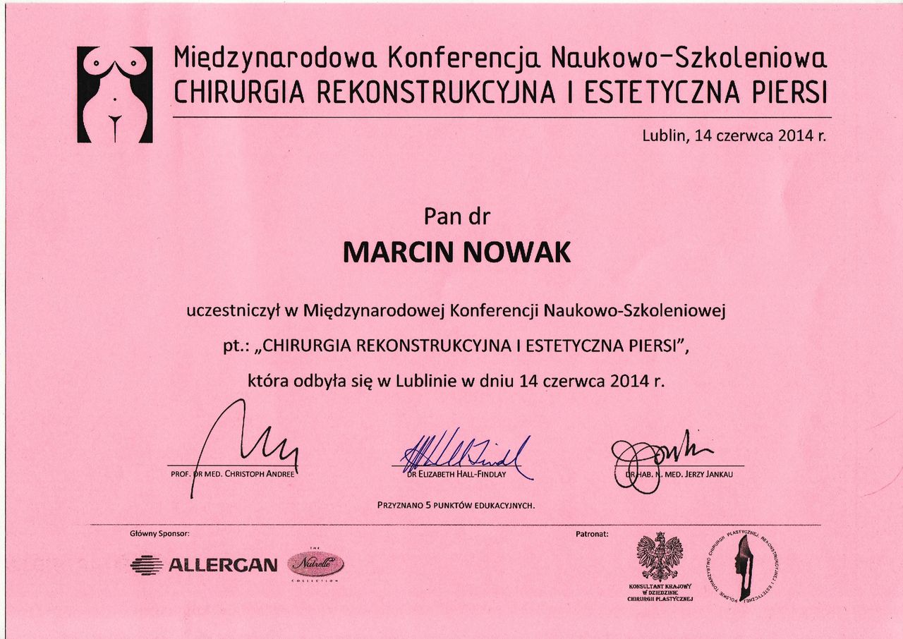 Szczerze polecam Pana Doktora Marcina Nowaka.Pan Doktor dokładnie wysłuchał moich oczekiwań, szczegółowo wyjaśnił każdy etap zabiegu oraz to jak się do niego przygotować i jak postępować po operacji.Powiekszalam u Doktora piersi,idealnie dobrał mi rodzaj i rozmiar implantów,a blizny są niemal niewidoczne.Efekt jest naturalny i dokładnie taki, jak chciałam. Podejście do pacjenta jest na najwyższym poziomie,czulam się dobrze zaopiekowana zarówno przed jak i po zabiegu.