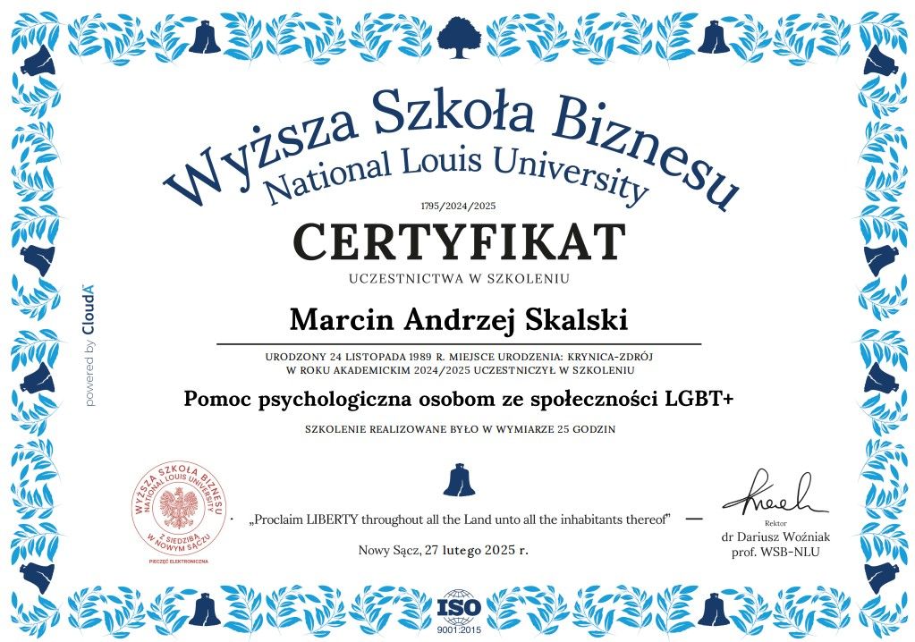 Zajmuję się również prowadzeniem szkoleń wśród młodzieży i dorosłych z zakresu Psychologii. Swoje doświadczenia również poszerzam dzięki pracy oraz szkoleniom zawodowym.