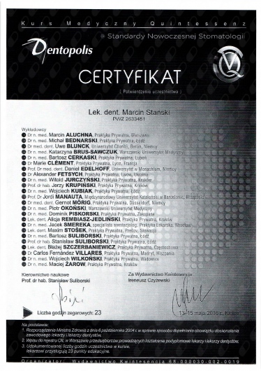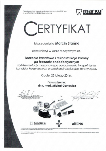 Jaki jest zakres porad oferowanych przez Marcin Stański?Marcin Stański to stomatolog. Na podstawie swojego doświadczenia i wykształcenia Marcin Stański oferuje usługi takie jak: Konsultacja stomatologiczna, Endodoncja mikroskopowa, konsultacja implantologiczna, wypełnienie kompozytowe, Powtórne leczenie kanałowe pod mikroskopem, wszczepienie implantu, augmentacja kości, odbudowa kompozytowa zęba na włóknie szklanym, Leczenie endodontyczne ząb jednokanałowy, Leczenie endodontyczne ząb dwukanałowy.