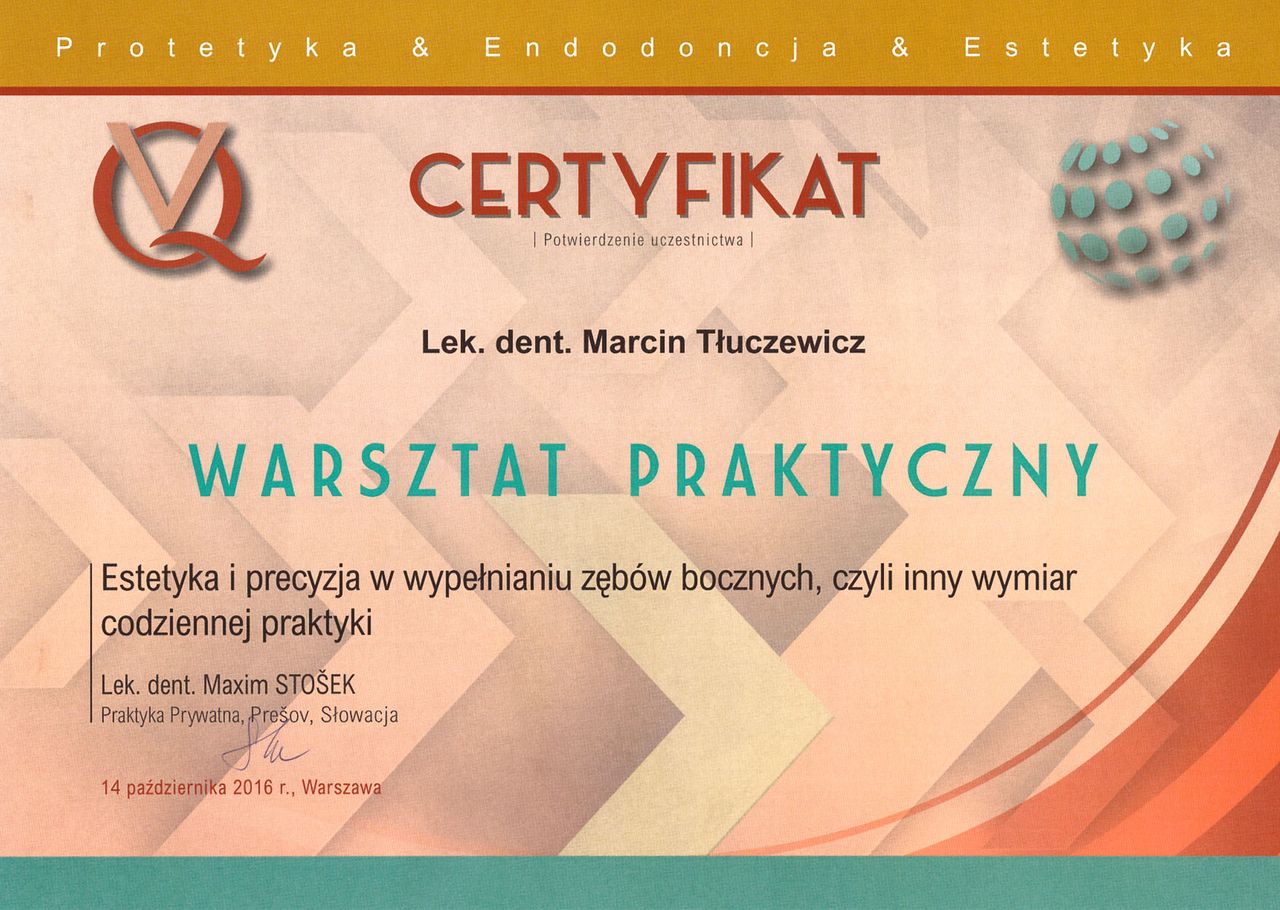 W pełni zasłużone 5 gwiazek. Pod pozytywną opinią dla doktora Marcina mogę podpisać się z czystym sumieniem. Już przy pierwszej wizycie otrzymałem pełne informacje na temat zabiegu i przebiegu całej wizyty. Lekarz wyjątkowo sympatyczny, uprzejmy i rzeczowy. Pierwszy raz spotkałem się z lekarzem, który z takim zaangażowaniem i profesjonalizmem informował o wszelkich wykonywanych czynnościach, o profilaktyce, którą mogę stosować samodzielnie w domu jak i o następnych etapach leczenia. Wizyty kontrolne także bardzo konkretne. Polecam! Gdyby każdy lekarz denstysta był taki jak p. Marcin to zdecydowanie wizerunek leczenia dentystycznego byłby bardzo pozytywny i w żadnym wypadku nie kojarzyłby się z traumą!