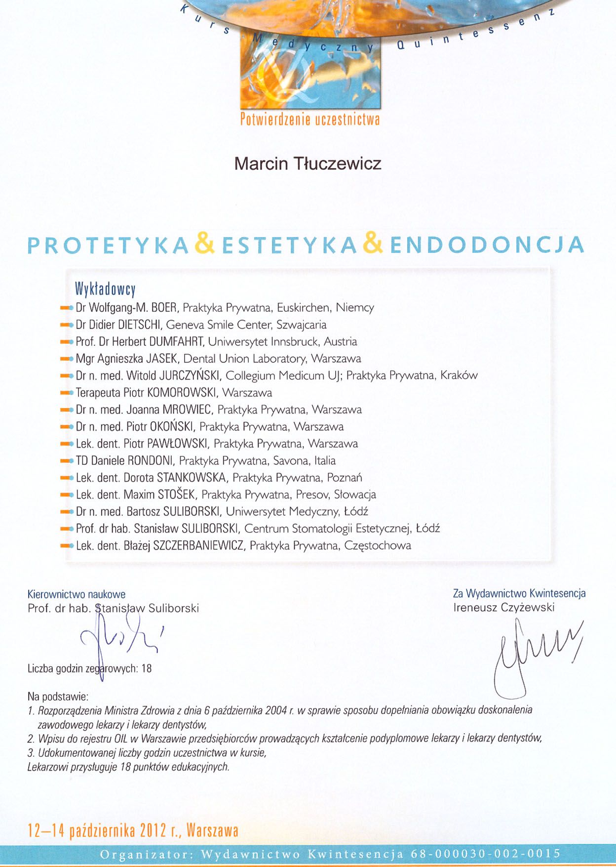 Okluzja w diagnostyce, planowaniu i leczeniu zaburzeń funkcjonalnych i estetycznych narządu żucia. – Prof. Dr hab. N.med. Jan Pietruski