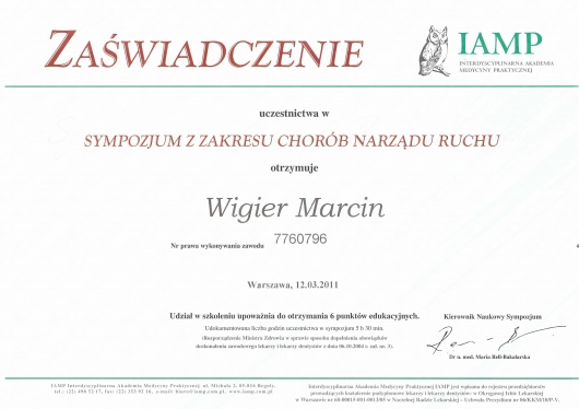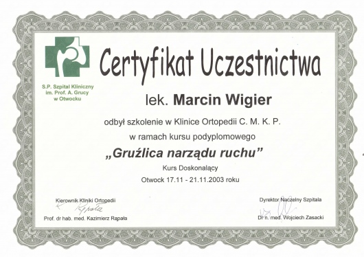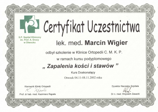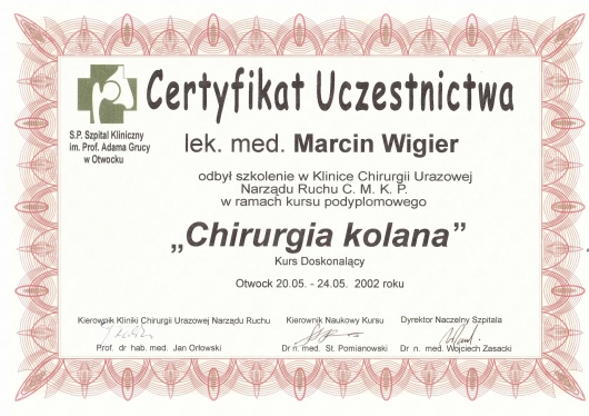 - ponad 150 operacji usunięcia zmian (gangliony, wyrośla chrzęstno-kostne, deformacje pourazowe itp.) w obrębie narządu ruchu,