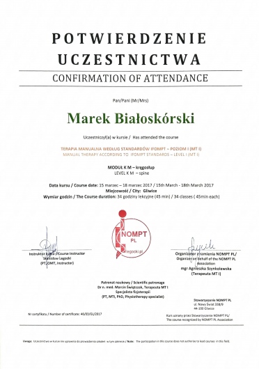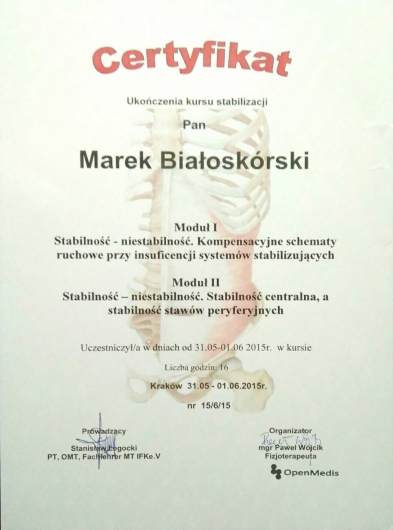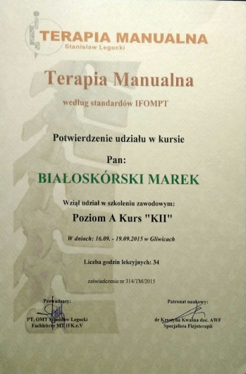 Kolejna już wizyta u Pana Marka tym razem z rwą kulszową utrzymującą się od 3 miesięcy. Zarekomendowany i zastosowany przez Pana Marka masaż powięzi usprawnił na tyle, że możliwe chodzenie po schodach no i jak zawsze znakomite zmniejszenie natężenia bólu.