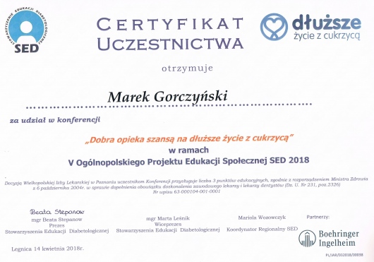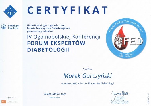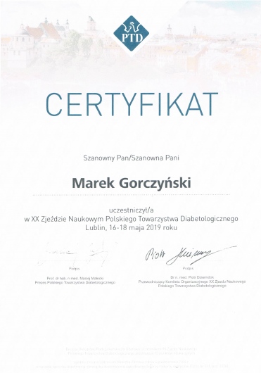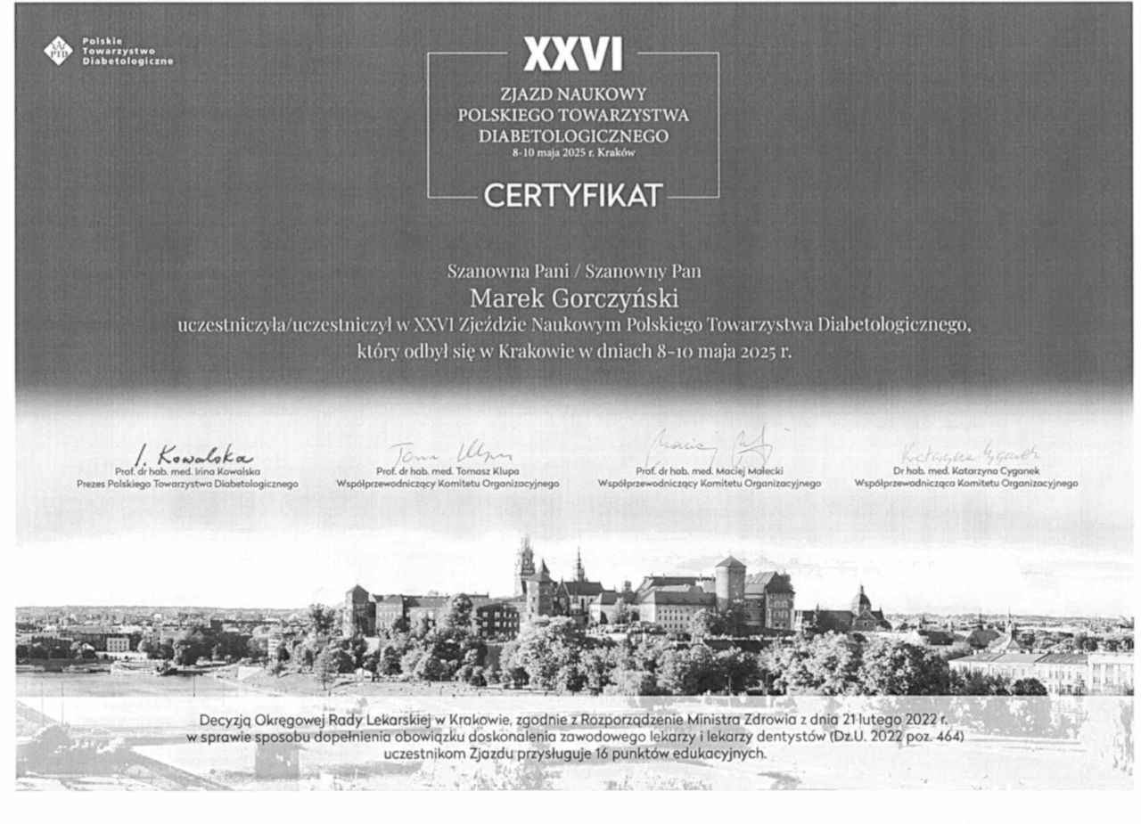 - Członek Polskiego Towarzystwa Diabetologicznego