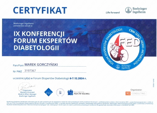 - Specjalizacja z diabetologii od 2009 roku