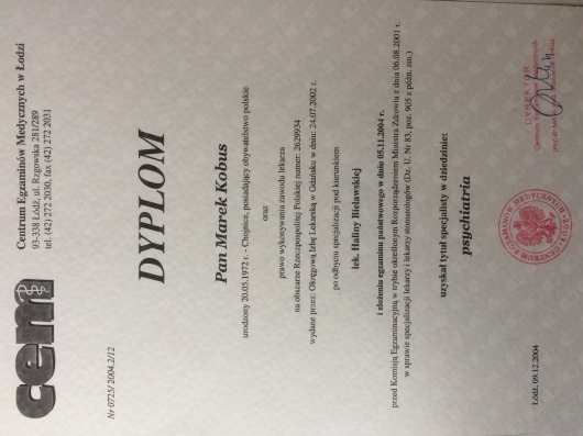 • Gabinet Psychiatryczny dr n.med.Marek Kobus • konsultacja psychiatryczna (pierwsza wizyta) •