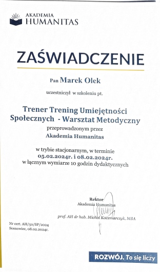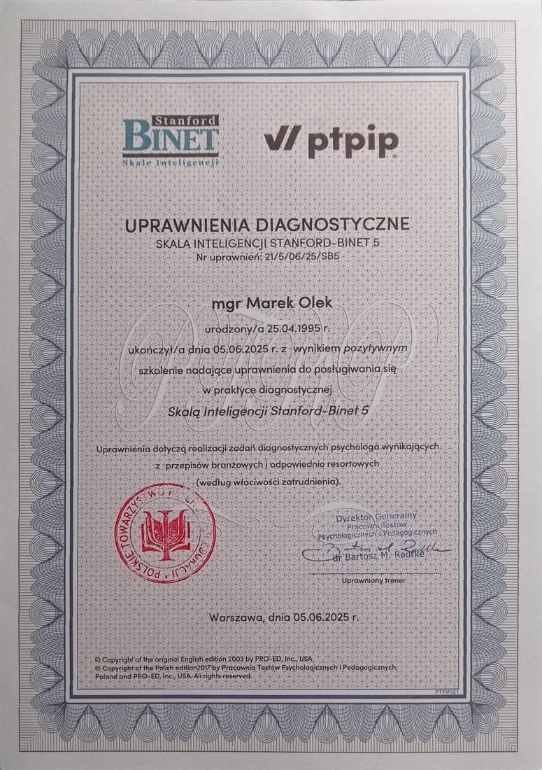 Jaki jest zakres porad oferowanych przez Marek Olek?Marek Olek to psycholog. Na podstawie swojego doświadczenia i wykształcenia Marek Olek oferuje usługi takie jak: Konsultacja psychologiczna, Badanie funkcji poznawczych, diagnoza ADHD dla dorosłych, psychoterapia par i małżeństw, Diagnoza psychologiczna, Psychoterapia, Konsultacja psychologiczna online, psychoterapia indywidualna, konsultacja psychoterapeutyczna, opinia psychologiczna.