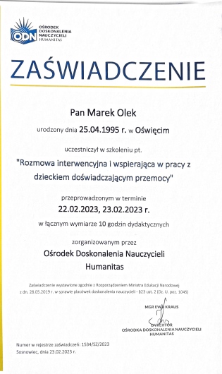 W pracy najbliższym jest dla mnie podejście humanistyczne, gdzie kieruje się empatią wobec pacjenta. Ukończyłem także kurs trenera TUS oraz kursy przygotowujące do pracy z osobami po traumach - zarówno dorosłych, jak i dzieci.