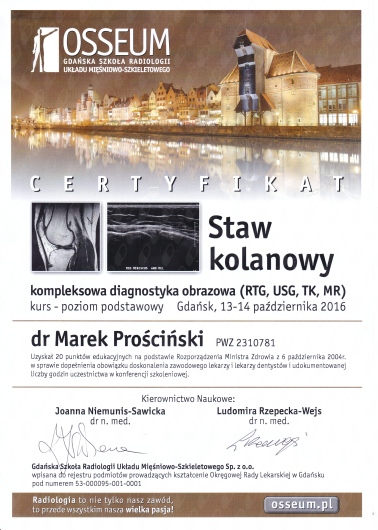 Jeden z najlepszych ortopedów, u których byłam. Profesjonalne podejście, przeprowadzenie badania i dobra diagnoza. Dzięki odpowiedniemu leczeniu przez doktora, ból ustąpił. Dodam, że przez kilka miesięcy chodziłam do innych lekarzy, którzy nawet nie zbadali mojego kręgosłupa, zlecali leczenie lekami (bardzo silnymi), a dopiero wizyta u ortopedy Marka Prościńskiego była pomocna i skuteczna.