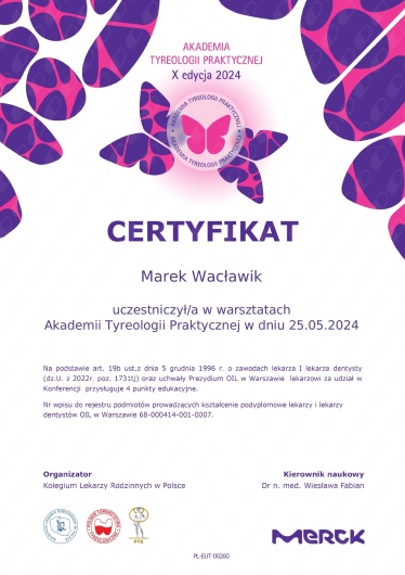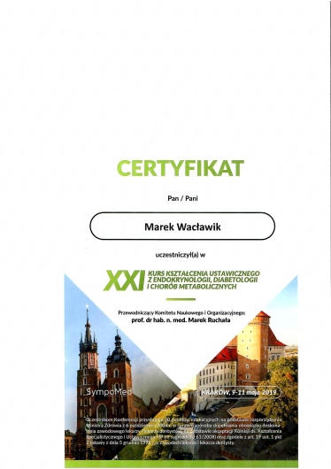 Jaki jest zakres porad oferowanych przez Marek Wacławik?Marek Wacławik to endokrynolog. Na podstawie swojego doświadczenia i wykształcenia Marek Wacławik oferuje usługi takie jak: Konsultacja endokrynologiczna, konsultacja endokrynologiczna + USG tarczycy, konsultacja endokrynologa - telemedycyna, konsultacja endokrynologiczna (kolejna wizyta).