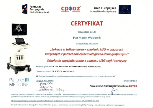 Lekarz specjalista endokrynolog. Doświadczenie zawodowe zdobył na Oddziale Endokrynologii Uniwersyteckiego Centrum Klinicznego w Katowicach. Uczestnik licznych kursów z zakresu USG tarczycy i przytarczyc. Członek Polskiego Towarzystwa Endokrynologicznego. Stale aktualizuje swoją wiedzę aktywnie uczestnicząc w warsztatach i konferencjach naukowych. Zajmuje się m. in. leczeniem chorób tarczycy i otyłości.