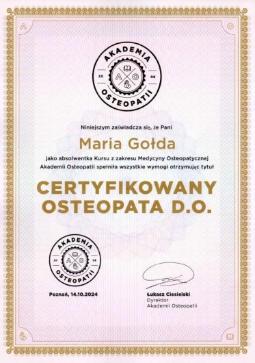 Jestem lekarzem specjalistą medycyny sportowej, lekarzem specjalistą rehabilitacji medycznej oraz certyfikowanym dyplomowanym osteopatą D.O. Oferuję kompleksową opiekę zdrowotną dla pacjentów w każdym wieku – od niemowląt po dorosłych.