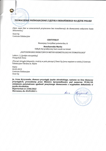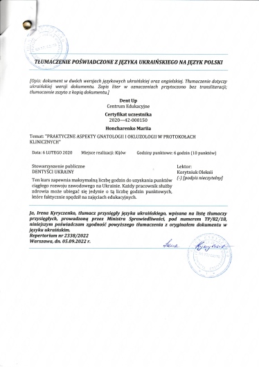 Maria Honcharenko: co mówią pacjenci?155 osób dodało swoją opinię. Maria Honcharenko ma średnią ocen 5 (na 5 gwiazdek).