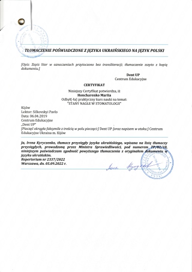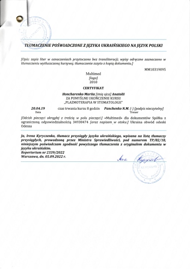 W jakich językach konsultuje Maria Honcharenko?Języki, których używa Maria Honcharenko to ukraiński, angielski, polski, rosyjski.