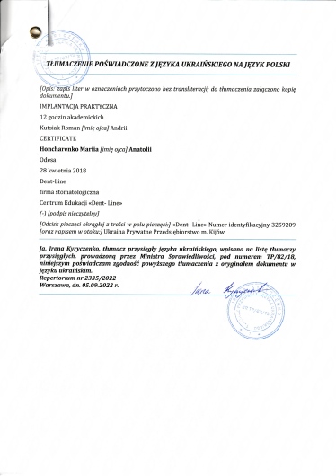 Czy Maria Honcharenko przyjmuje online, bez konieczności pojawiania się w placówce?Nie, w tym momencie Maria Honcharenko nie oferuje konsultacji online.
