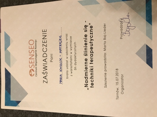 Tarnów, lipiec 2018 „Nadmierne ślinienie się- techniki terapeutyczne” – mgr Marta Baj-Lieder