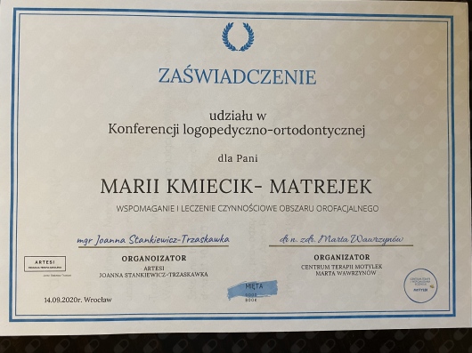 Tarnów, wrzesień 2020 „Terapia sensomotoryczna i korekta dysfunkcji ustno- twarzowych- moduł I” – dr Anna Regner