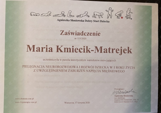 Dobry start dziecka Agnieszka Słoniowska, czerwiec 2020 „Pielęgnacja neurorozwojowa w 1 r.ż. dziecka z uwzględnieniem zaburzeń napięcia mięśniowego” – Agnieszka Słoniowska
