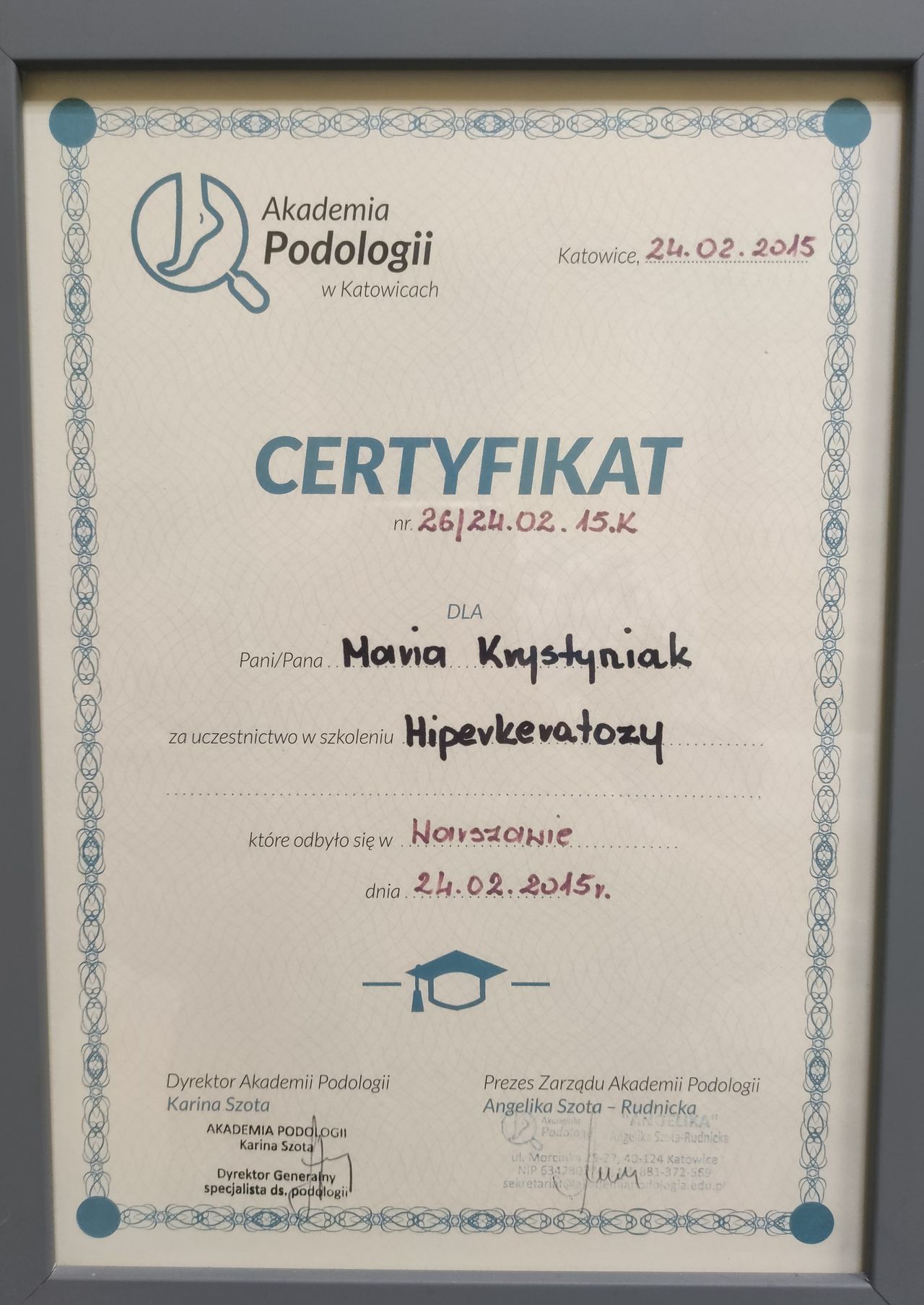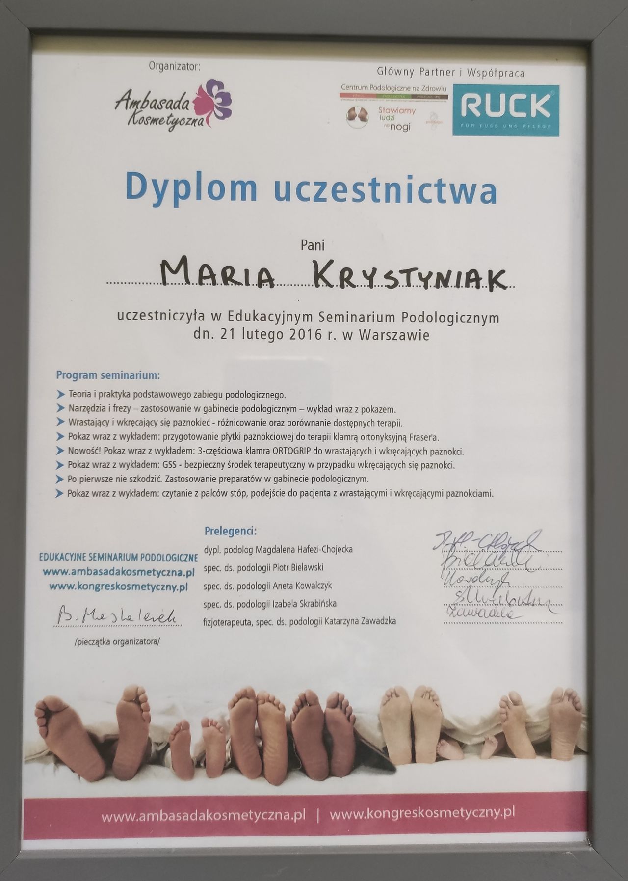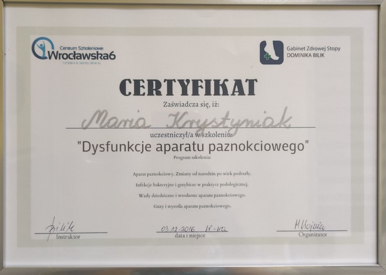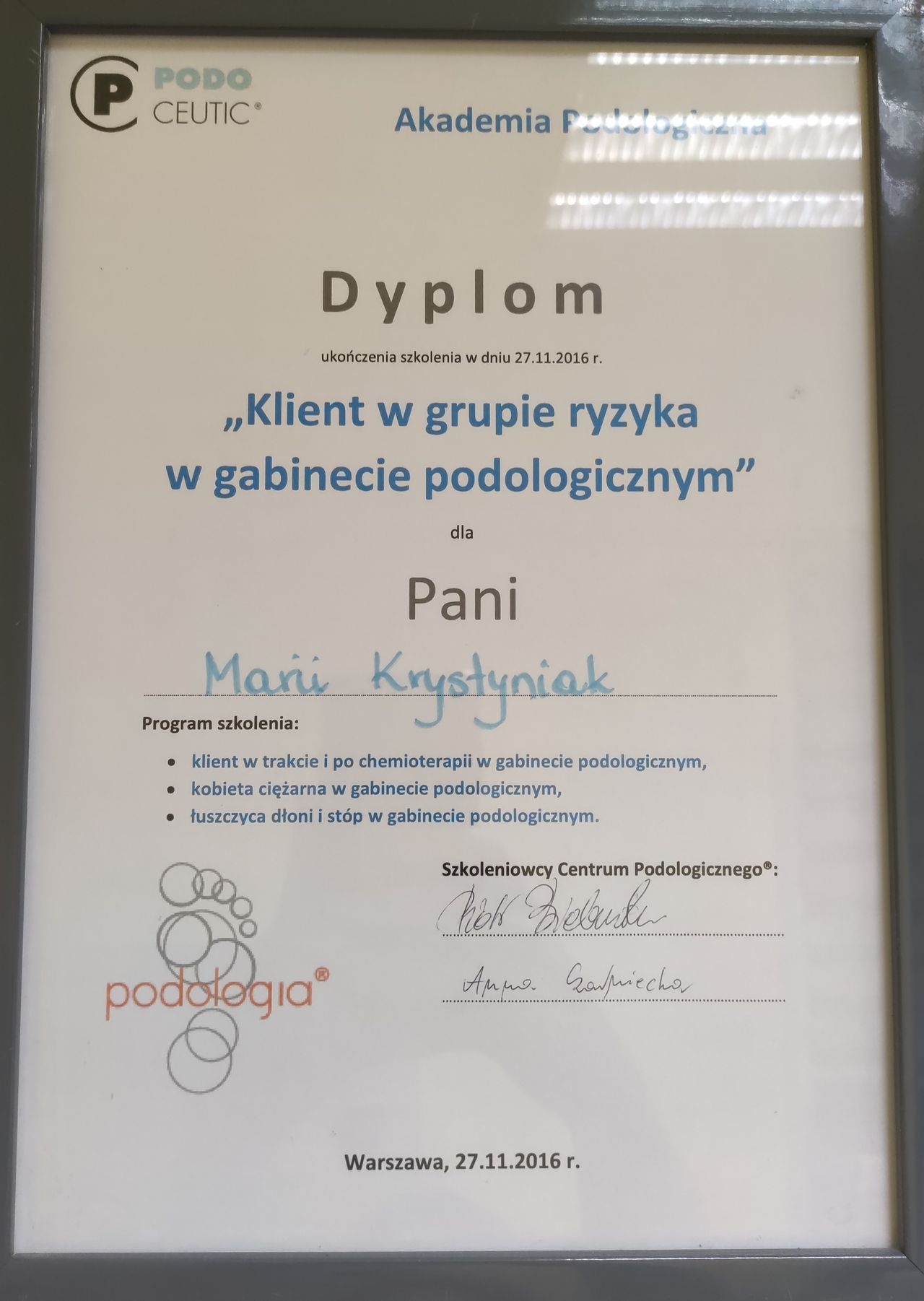 Zawód podologa to moja pasja, pracuję w nim od 2010r. Podziwiam konstrukcję ludzkiego ciała i jego funkcjonowanie, dlatego nie jest mi obojętne, gdy coś w nim nie działa.