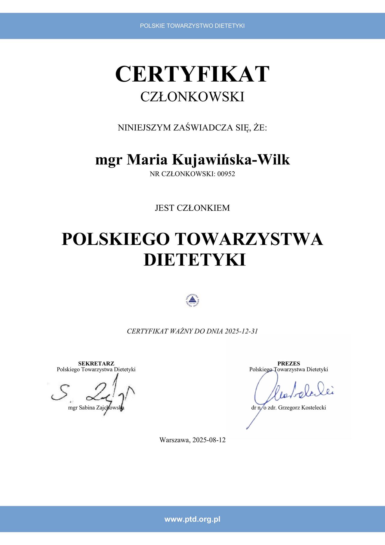 Nieustannie poszerzam swoją wiedzę, uczestnicząc w licznych kursach, szkoleniach i konferencjach, aby zapewniać moim pacjentom opiekę dietetyczną opartą na najnowszych doniesieniach naukowych.