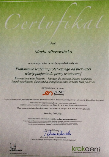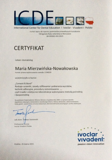 • Indywidualna Praktyka Stomatologiczna Maria Mierzwińska-Nowakowska • •