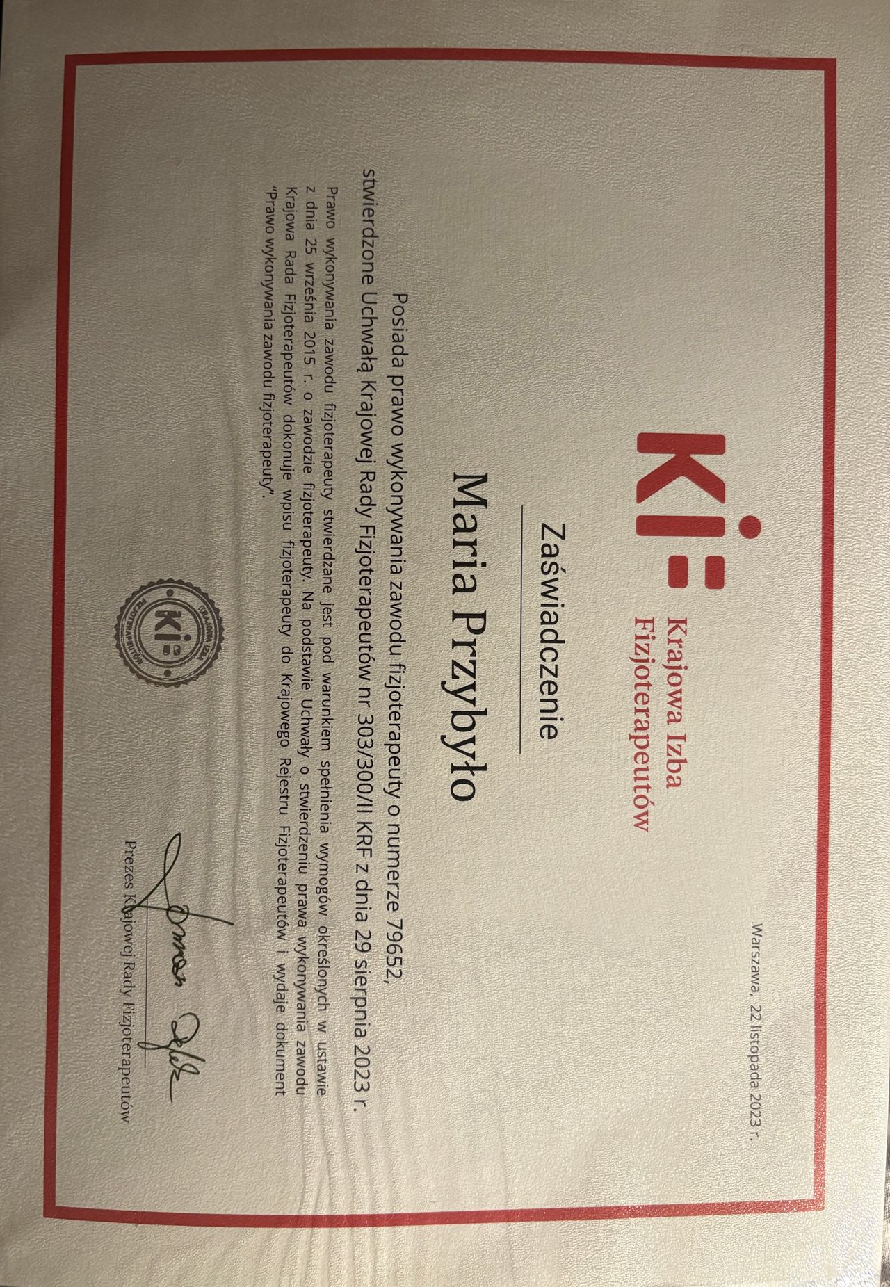 Wizyta przebiegła w komfortowej atmosferze. Pani Maria jest w pełni zaangażowana, przyjazna i konkretna. Szczegółowo wytłumaczyła kwestię urazu i wdrażane leczenie. Szczerze polecam!