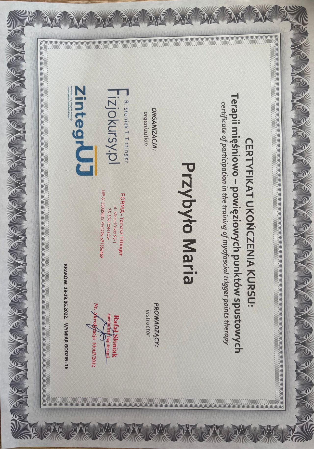 Pani Maria to niezwykle sympatyczna osoba, świetna specjalistka. Trafiłam do Pani Marii z problemem bólu pleców i po jeden wizycie ból odpuścił Bardzo dziękuję