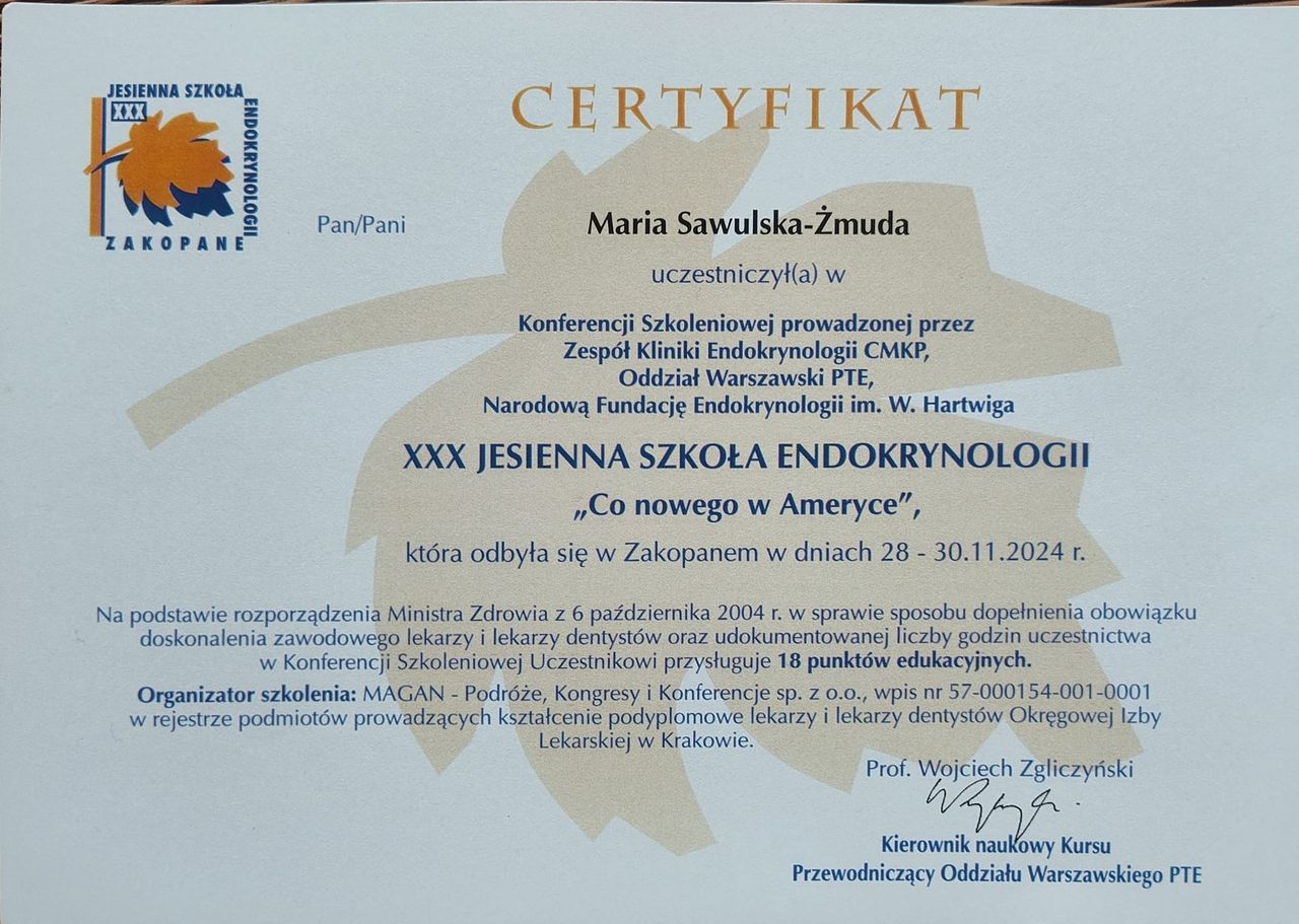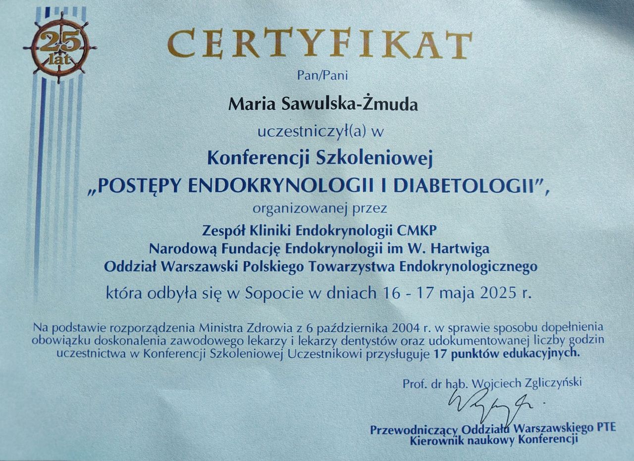 Co roku biorę udział w licznych sympozjach dotyczących najnowszych metod leczenia schorzeń endokrynologicznych oraz szkoleniach doskonalących specjalistów endokrynologów zarówno w zakresie teorii, jak i w wykonywaniu badań USG