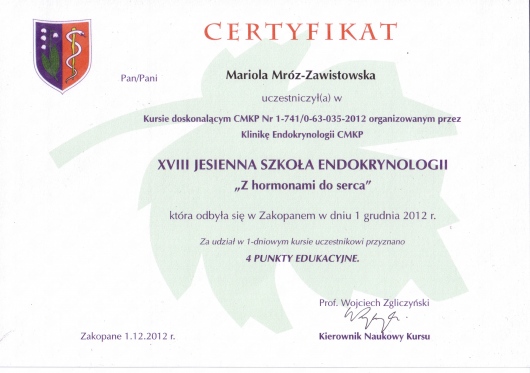 Byłam po raz pierwszy na wizycie u Pani Doktor dwa dni temu - jestem bardzo zadowolona. Wyczuwa się wielkie zaangażowanie, chęć niesienia pomocy, zainteresowanie problemami pacjenta - dziękuję, Pani Doktor. Nie spotkałam jeszcze lekarza, który okazałby mi tyle serca, poświęcił tyle czasu na dokładne wyjaśnienie przyczyn moich dolegliwości ,i to nie tylko z zakresu endokrynologii, mam również problemy ginekologiczne. Pani Doktor posiada ogromną wiedzę merytoryczną, jest kompetentna, życzliwa, po prostu lekarz z powołania. Ma bardzo przyjazny stosunek do pacjenta, w trakcie wizyty czuje się, że jest się dla Niej kimś ważnym - jestem bardzo wdzięczna, Pani Doktor.
