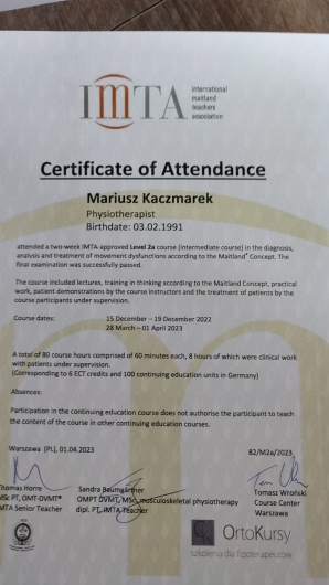 Po trzech operacjach kręgosłupa trafiłam do Pana mgr Mariusza Kaczmarka. Dzięki jego ogromnej wiedzy, doświadczeniu i indywidualnemu podejściu, nie tylko odzyskałam sprawność, ale też wiarę, że mogę znów normalnie funkcjonować.