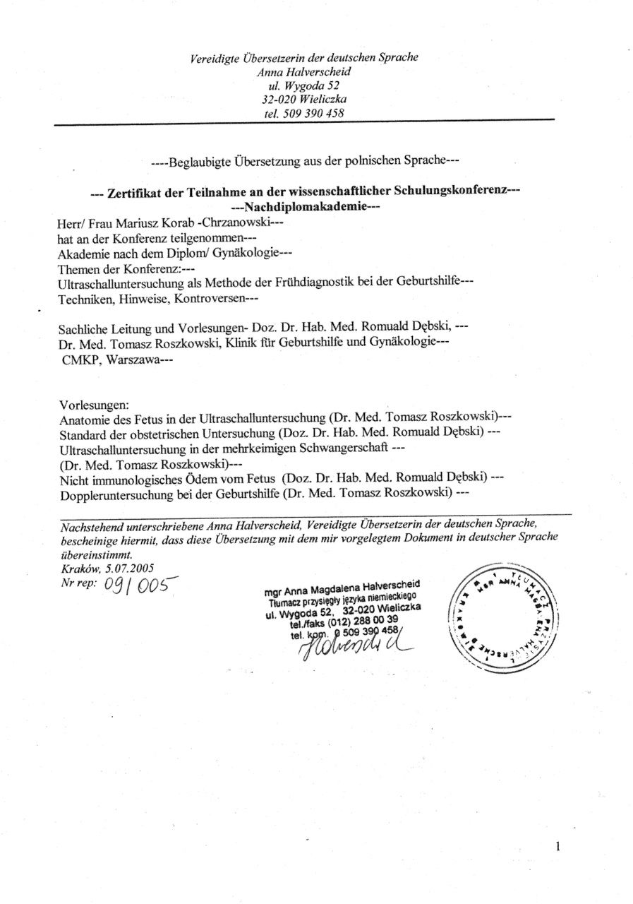specjalistą ginekologiem-położnikiem od 2007 roku pracującym w Niemczech.