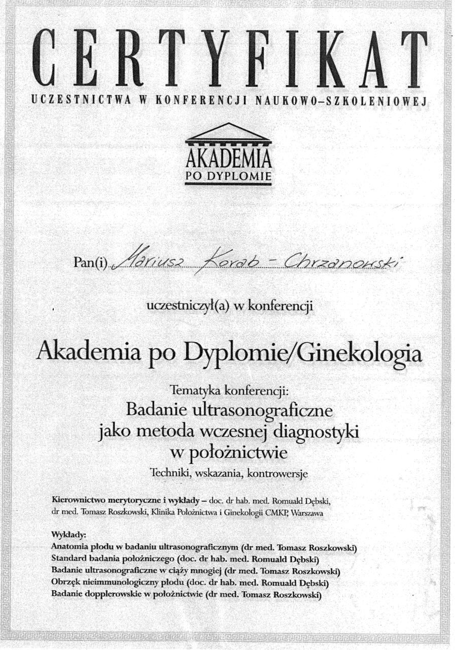 Doktor Chrzanowski prowadził moją drugą ciąże,zawsze gotowy i pomocny w każdej porze dnia i nocy,gdyby tylko było coś nie w porządku ze mną lub dzieckiem.Ciąża była zagrożona już na samym początku groziło mi poronienie, ale dzięki szybkiej reakcji pana doktora,wszystko zakończyło się dobrze i po dziewięciu miesiącach mogłam cieszyć się zdrowym chłopcem.Opieka podczas ciąży oraz póżniej podczas porodu i pobytu w szpitalu była bez zarzutu.Z czystym sumieniem polecam dr.Chrzanowskiego jako bardzo dobrego ginekologa.