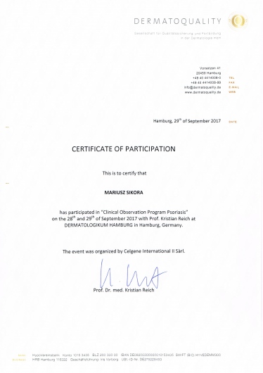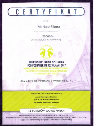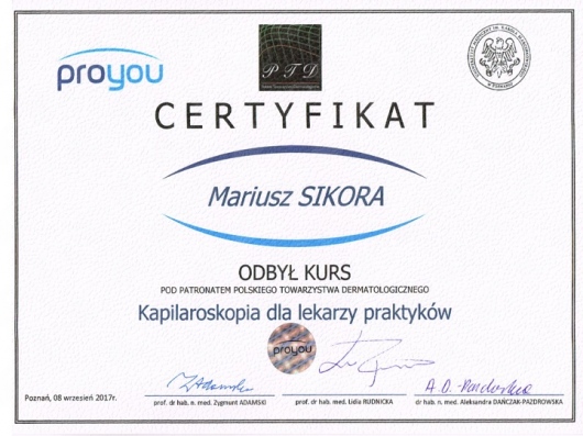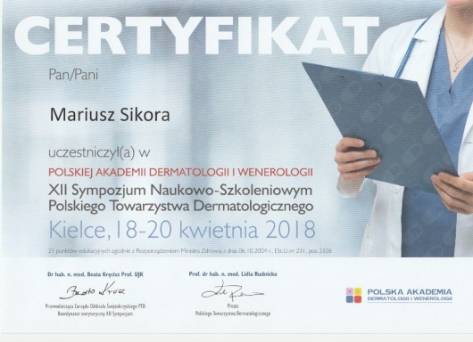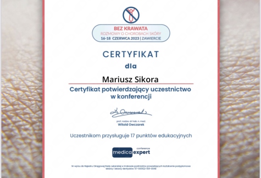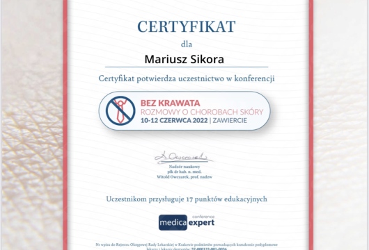 Pan Doktor jest świetnym specjalistą i osobą bardzo zaangażowaną w proces leczenia i diagnozy. Warto dodać, że Pan Doktor jest też niezwykle empatycznym i sympatycznym człowiekiem. Dzięki jego wiedzy i sposobowi tłumaczenia czuje się bardzo bezpiecznie. Szczególnie polecam kontrolę znamion barwnikowych. Dzięki systemowi videodermatoskopii można obiektywnie monitorować dynamikę zmian i dokładnie ocenić, czy "pieprzyk" kwalifikuje się do obserwacji czy do wycięcia. Bardzo dziękuję za pomoc.