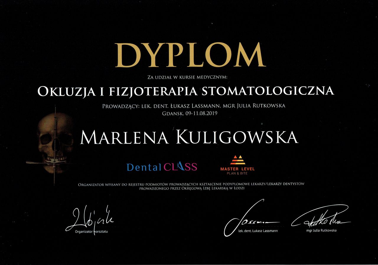 -przygotowaniem pacjenta z w/w objawami do leczenia protetycznego, ortodontycznego i ortognatycznego.