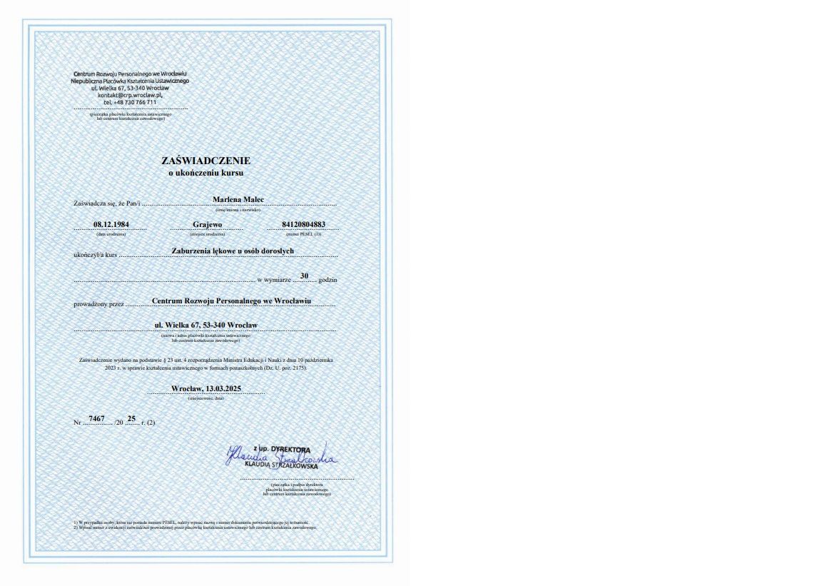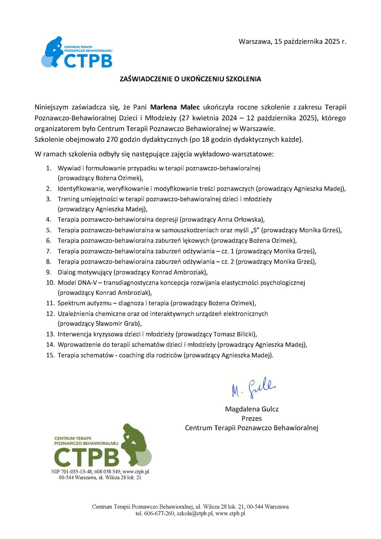 • Marlena Malec Psycholog • Konsultacja psychologiczna •