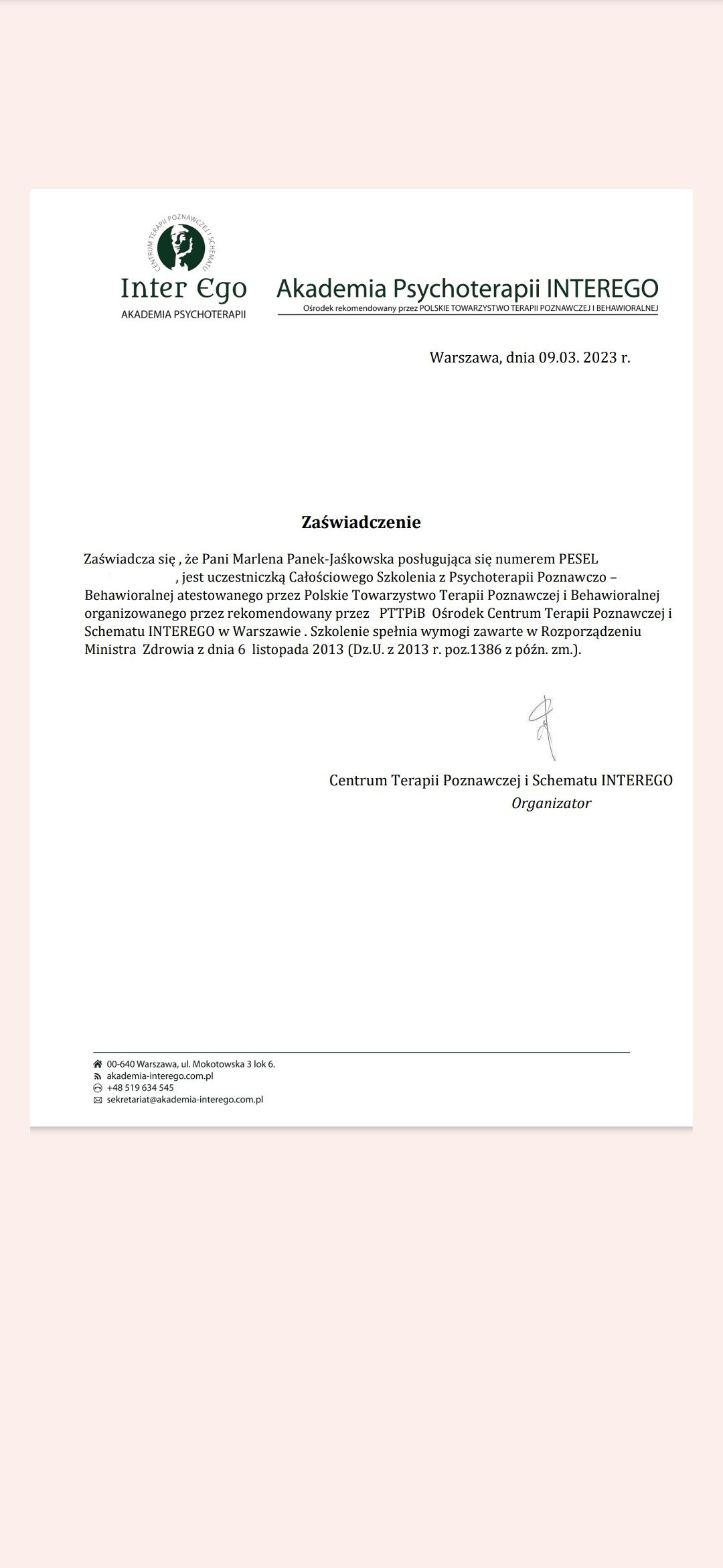 Psychoterapeuta certyfikowany