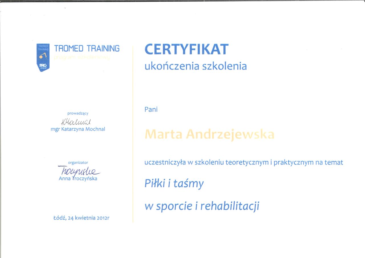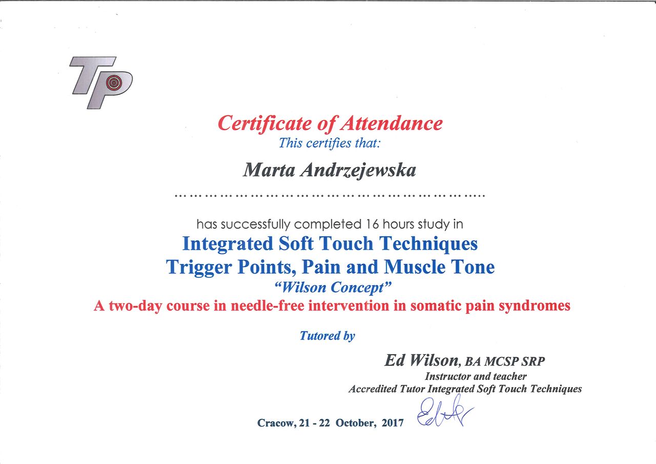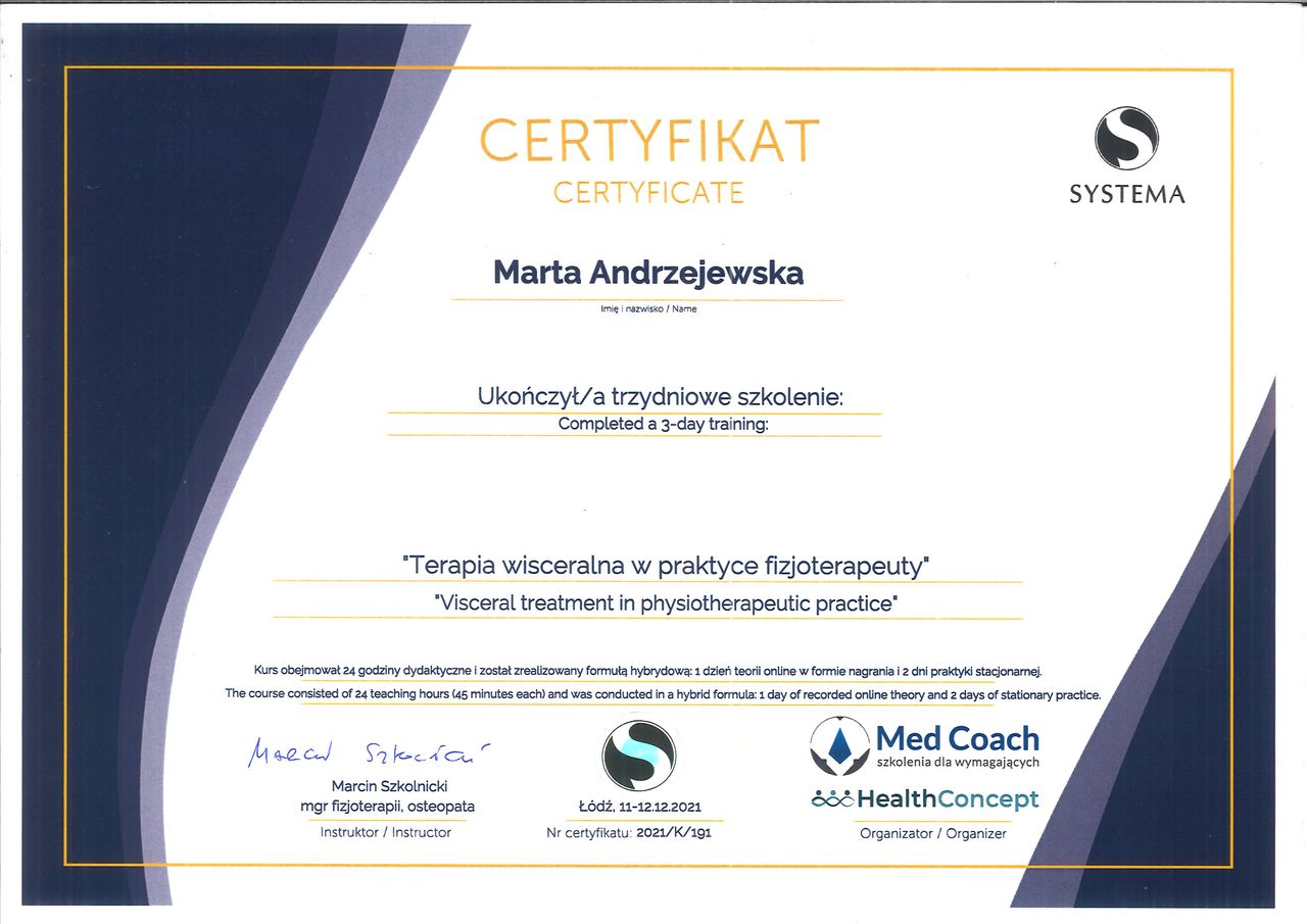 Do Pani Marty trafiłam najpierw na terapię manualną z bólem pleców, z czym świetnie sobie poradziła.