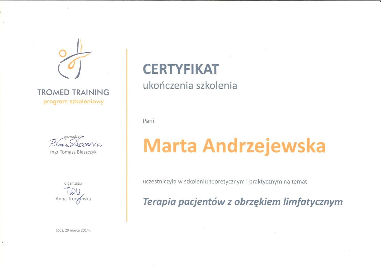 Chodziłam na drenaż do P. Marty. Po kilku sesjach zobaczyłam ogromną różnicę. Opuchlizna z nóg oraz kostek zniknęła jak ręką odjął. Dziękuję i polecam!