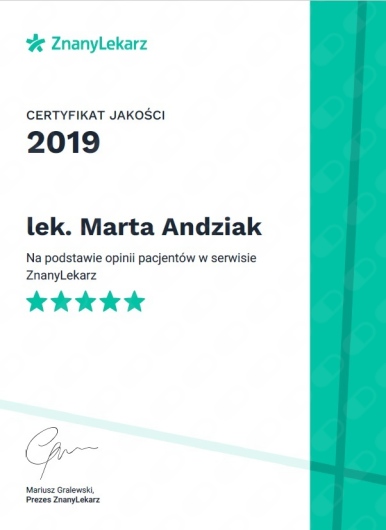 Administratorem danych osobowych jest ZnanyLekarz sp. z o.o. z siedzibą w Warszawie przy ul. Kolejowej 5/7. Informujemy, że po przekazaniu przez nas Twoich danych osobowych wybranemu przez Ciebie Profesjonaliście, staje się on również administratorem Twoich danych osobowych i przetwarza je w celach związanych ze świadczeniem usług medycznych lub innych podobnych.